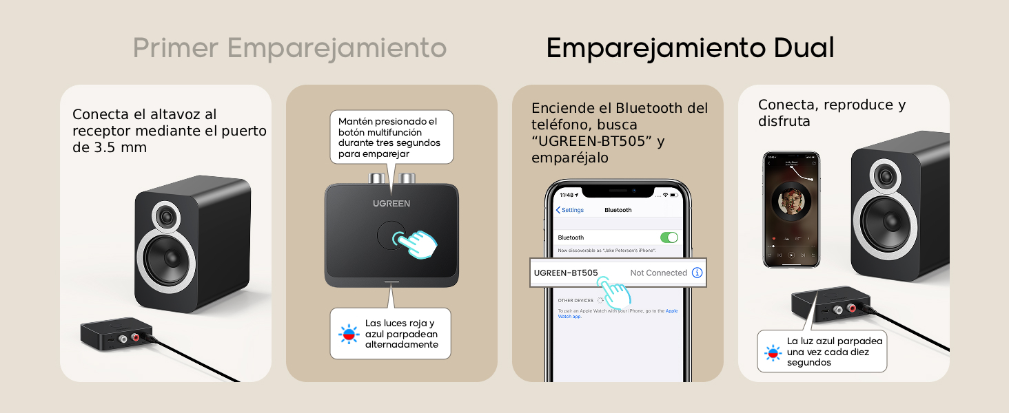 R: Para teléfonos Android, Ve a Configuración > Bluetooth > Ajustes del dispositivo conectado (por ejemplo, UGREEN-BT505 el nombre Bluetooth puede variar según el producto), luego habilita la función “Sincronización de volumen” y ajusta el volumen nuevamente. Para iPhone, Ve a Configuración > Sonidos y vibraciones > Seguridad de los auriculares, desactiva “Reducir sonidos fuertes” y ajusta el volumen nuevamente.
